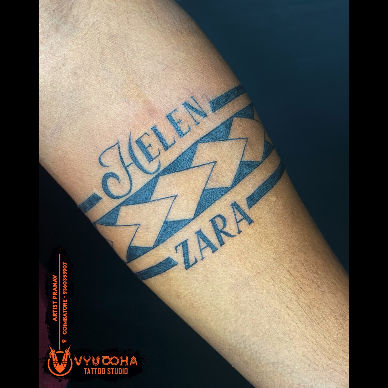 Custom Name Band Tattoo – Helen & Zara in Kuniyamuthur, Coimbatore This Custom Name Band Tattoo beautifully features the names Helen and Zara, symbolizing love, connection, and everlasting bond. Designed with bold tribal-style patterns and a striking armband layout, this tattoo wraps around the forearm, giving it a powerful and stylish look. Perfect for honoring loved ones or expressing deep personal connections, this design blends both modern aesthetics and meaningful personalization. Inked with precision at VyuoohA Tattoo Studio, Coimbatore, by artist Pranav, it’s an ideal choice for those looking for unique and memorable name tattoos. Name band tattoo near by Kuniyamuthur, Coimbatore, custom name tattoo design near me Kuniyamuthur, Coimbatore, , Helen tattoo in Kuniyamuthur, Coimbatore, , Zara tattoo Kuniyamuthur, Coimbatore, armband tattoo Kuniyamuthur, Coimbatore, meaningful name tattoos Kuniyamuthur, Coimbatore, , personalized tattoo ideas Kuniyamuthur, Coimbatore, tribal armband tattoo Kuniyamuthur, Coimbatore, couple tattoo designs Kuniyamuthur, Coimbatore, family name tattoo Kuniyamuthur, Coimbatore, forearm tattoo Kuniyamuthur, Coimbatore, , VyuoohA Tattoo Studio Kuniyamuthur, Coimbatore, tattoo artist Pranav Kuniyamuthur, Coimbatore, unique name tattoos for men Kuniyamuthur, Coimbatore, stylish band tattoos. Kuniyamuthur, Coimbatore,
