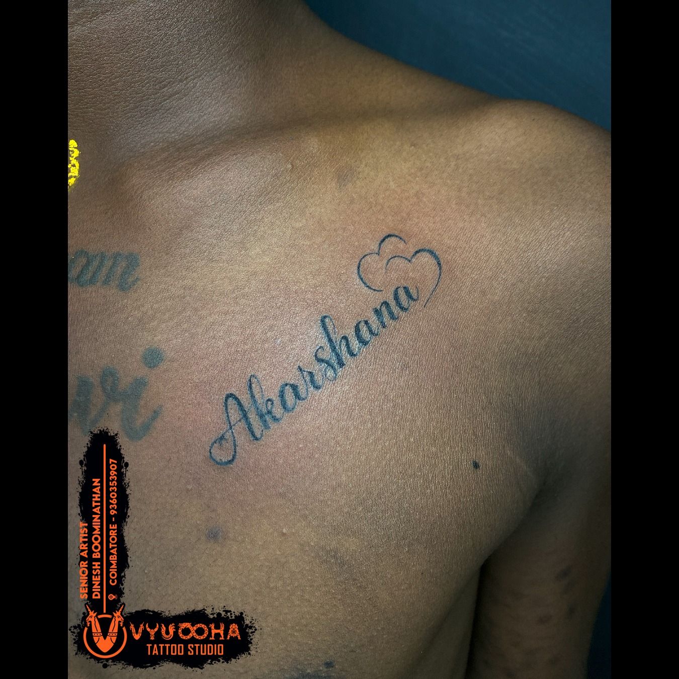 Personalized Name Tattoo with Heart – Elegant Script Design This Personalized Name Tattoo features the name 'Akarshana' written in elegant, flowing script, accompanied by a delicate heart symbol. Perfect for expressing love, dedication, and deep personal connections, this tattoo design brings a meaningful touch of individuality. Ideal for placement on the chest or forearm, it reflects a simple yet powerful tribute to a loved one. The minimalist style ensures timeless elegance, making it a perfect choice for those who prefer subtle yet significant body art. Name Tattoo Design Heart Name Tattoo Personalized Name Tattoo Elegant Script Tattoo Minimalistic Name Tattoo Simple Love Tattoo Chest Name Tattoo Forearm Name Tattoo