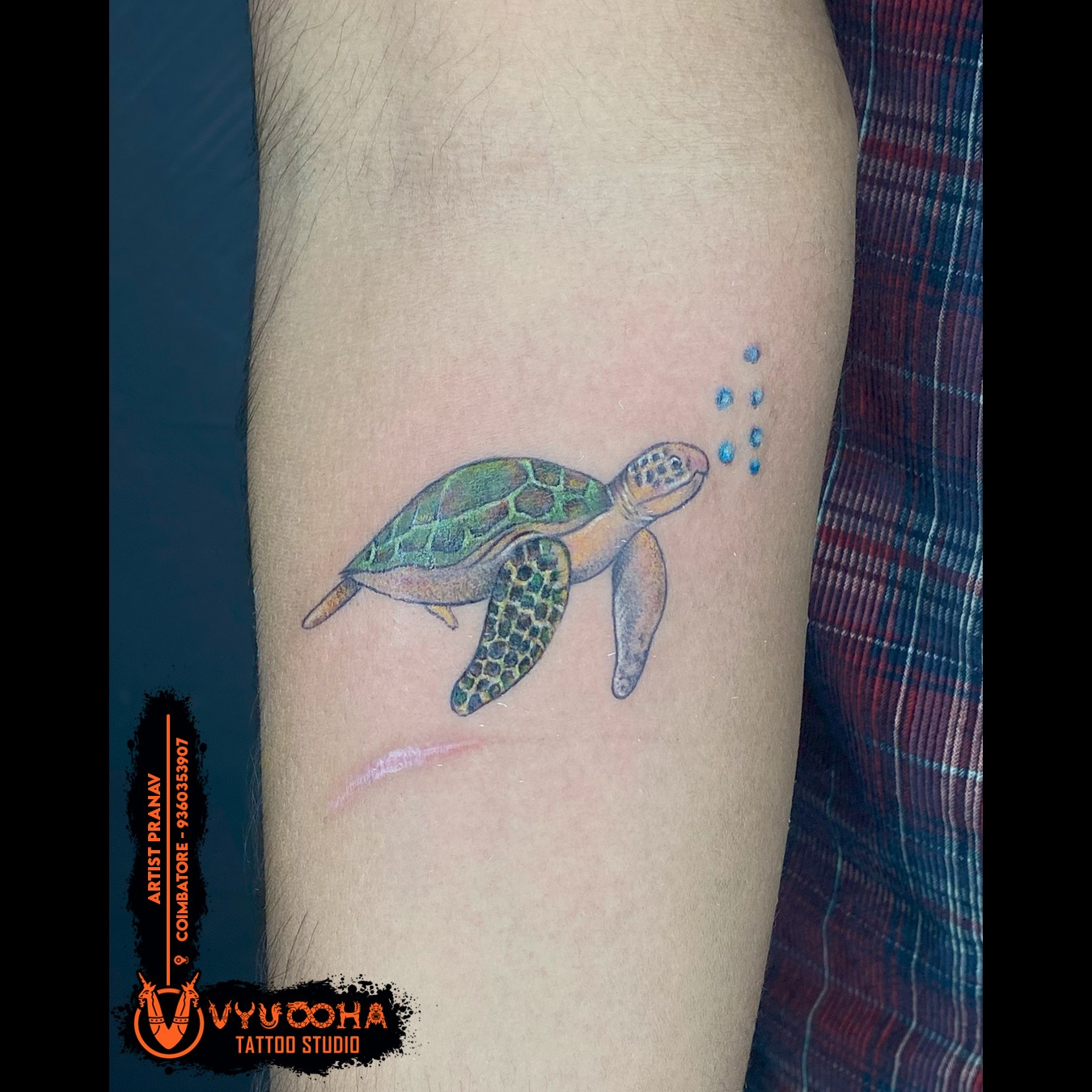 Realistic Sea Turtle Tattoo – Symbol of Longevity & Serenity | Vyuooha Tattoo Studio sukrawarpettai, Coimbatore This stunning realistic sea turtle tattoo by Artist Pranav at Vyuooha Tattoo Studio, Coimbatore, captures the calm and strength of ocean life. The soft shades of green and blue bring the turtle to life, symbolizing wisdom, patience, and protection. Perfect for those who connect deeply with the sea and value inner peace and endurance. Book your marine-inspired tattoo with Vyuooha — where creativity meets precision. turtle tattoo near by sukrawarpettai, Coimbatore, sea turtle tattoo near me sukrawarpettai, Coimbatore, realistic turtle tattoo sukrawarpettai, Coimbatore, small turtle tattoo sukrawarpettai, Coimbatore, ocean life tattoo sukrawarpettai, Coimbatore, marine tattoo design sukrawarpettai, Coimbatore, turtle tattoo meaning sukrawarpettai, Coimbatore, animal tattoo sukrawarpettai, Coimbatore, Vyuooha Tattoo Studio sukrawarpettai, Coimbatore, turtle arm tattoo sukrawarpettai, Coimbatore, Pranav tattoo artist sukrawarpettai, Coimbatore, minimal turtle tattoo sukrawarpettai, Coimbatore, green turtle tattoo sukrawarpettai, Coimbatore, realistic animal tattoo design sukrawarpettai, Coimbatore, symbolic tattoos sukrawarpettai, Coimbatore